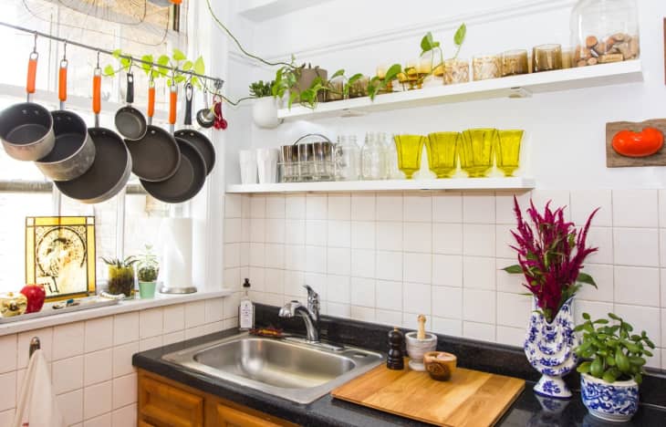 Youll just need two command hooks per lid and youll want to work out your positioning before you start sticking things ononce you have a general idea where things should go so that the cabinet can still close affix a hook at 800 and 400 pretending your lid is a clock face and slide your lid in. If you have a free. The backs of your cabinet doors are waiting to be put to good use. Affix an antique sled to the ceiling and youve just got yourself the coziest kitchen ever.
